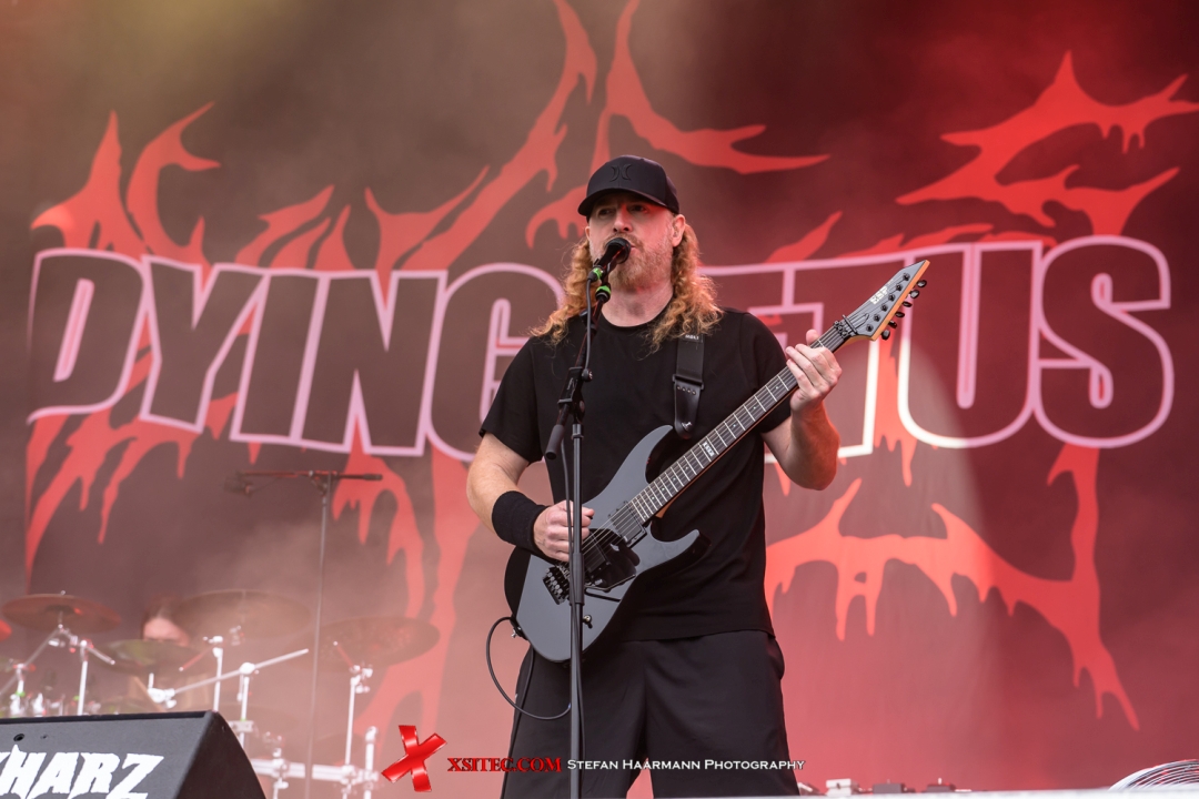 Á Capella Metal mit VAN CANTO steht zur Teatime auf dem Programm, obgleich es für die Band scheinbar noch früh am Tag ist, das fröhliche „Guten Morgen“ wirkt an dieser Stelle etwas verräterisch. Die Instrumente werden überwiegend von den Stimmen der Sängerin und der Sänger imitiert, ein Drumkit sorgt für den passenden Rhythmus, mit dem die Songs den nötigen Drive bekommen. „Rebellion“ (GRAVE DIGGER) oder der IRON MAIDEN Klassiker „Fear Of The Dark“ werden so in neuem Gewand in Szene BENEDICTION | ROCKHARZ 2024gesetzt während in der Folge mit BENEDICTION Death Metal alter Schule geboten wird, der Moshpits zuhauf generiert, während die Jungs auf der Bühne sichtlich Spaß an der Resonanz des Publikums haben.