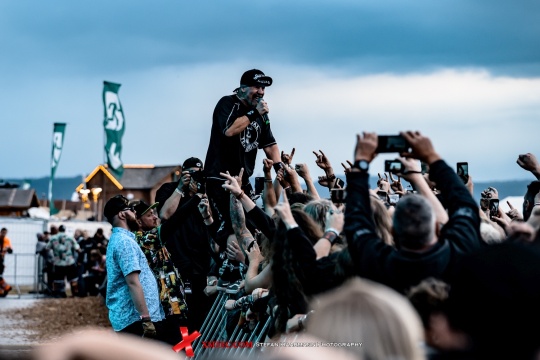 Ob SUICIDAL TENDENCIES im Social Media Zeitalter ihren Bandnamen bereits verflucht haben, ist nicht überliefert. Fakt ist jedoch, dass eine Suche auf den einschlägigen Plattformen nach der Band zunächst einen Hinweis auf psychologische Hilfe ausspuckt, bevor die Accounts der Band erreichbar sind. Unter dem Motto „If you ain´t suicidal, you ain´t shit“ knüppeln die Kalifornier ihren Hardcore mit Thrash und Punk Einflüssen in die Menge, Mike "Cyco Miko" Muir unternimmt gegen Ende der Show sogar den Versuch, als Crowdsurfer das Infield unsicher zu machen, was der Security den Schweiß auf die Stirn treibt.