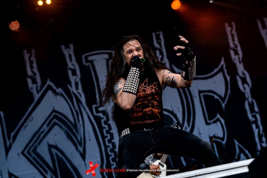KNIFE schalten anschließend in Sachen Geschwindigkeit wieder ein paar Gänge rauf und metzeln mit ihrem Speed -Metal teutonischer Prägung alle noch in Folk Gefühlen schwelgenden Fans im Handstreich nieder. Moshpits und Pommesgabel gibt es ab der ersten Sekunde zu bestaunen, während sich der Himmel über der Devil´s Wall schon bedrohlich zu schwärzen beginnt.