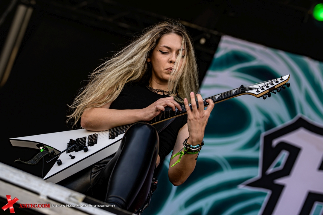 Das italienische Power-Metal-Quintett FROZEN CROWN geht kurz darauf mit Vollgas in den Tag. Sängerin Giada Etro glänzt mit klaren Vocals, während die Band mit Doublebass-Gewitter und melodiösen Leads überzeugt. Die Menge jubelt zu Krachern wie „Neverending“, „Kings“ und „Steel And Gold“, bevor das Set mit „I Am The Tyrant“ ein episches Ende findet.