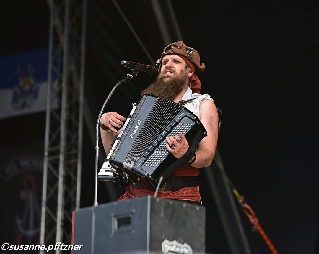 Während der Jubel für FROG LEAP noch nicht verklungen ist, stechen nebenan MR. HURLEY & DIE PULVERAFFEN in See. Auf nach „Tortuga“, wo man dem Piratendasein frönen kann, da keine Anekdote diese Insel wieder verlässt. Als alte Bekannte des ROCKHARZ-Festivals mischen die Party-Piraten das Publikum mächtig auf, das textsicher die Hits der Kapelle mitsingt. Auch in diesem Jahr geht der Sonderpreis für die beste Crowdsurfer-Performance an die junge Dame, die auf der Brust ihres Partners stehen im Bühnengraben ankommt. Ganz großer Sport!