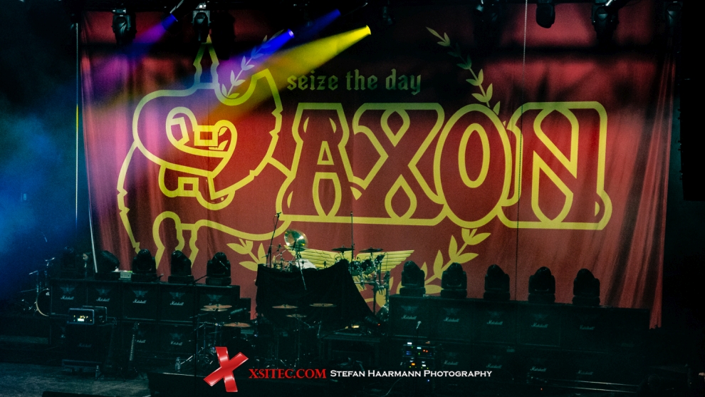 Nachdem alles für das große SAXON-Finale hergerichtet ist, lassen sich die Jungs um Biff Byford nicht lange bitte, betreten die vollständig eingenebelte Bühne und legen mit „Carpe Diem (Seize The Day)“ vom gleichnamigen, aktuellen Album erwartungsgemäß los. Während einige Bands des diesjährigen Meetings mit Soundproblemen zu kämpfen hatten, zeigen die Altmeister auch hier, wie man das macht und erfreuen die Fans mit kristallklarem Output der mächtigen PA. Dass die Turbinenhalle zu diesem Zeitpunkt in Partylaune ist, versteht sich von selbst.