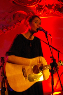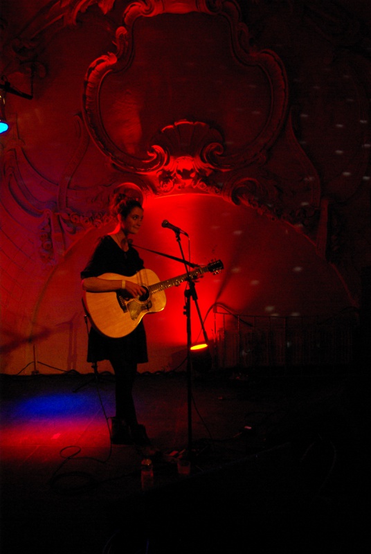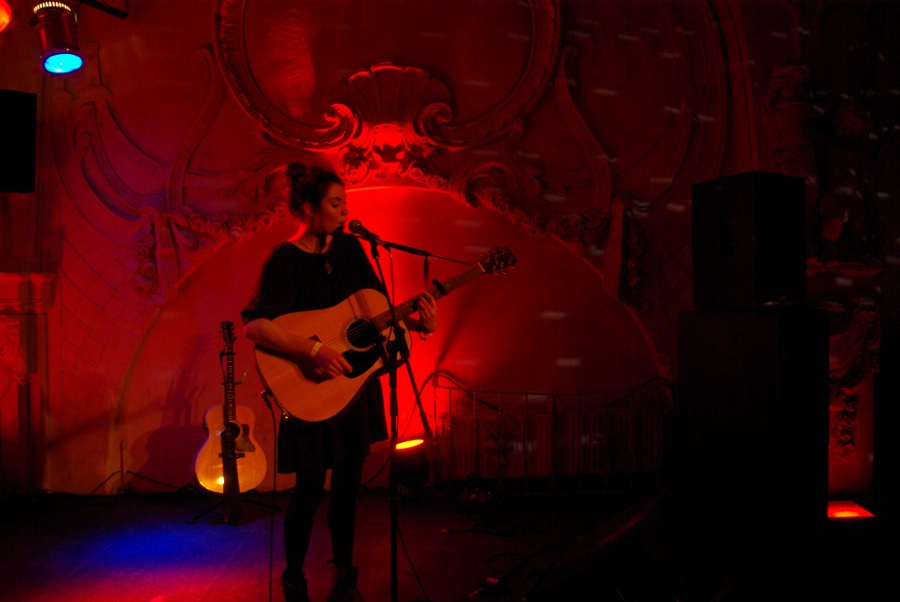 Still und leise wie ein scheues Waldgeschöpf betritt Rachel Sermanni nach kurzer Pause die kleine Bühne. Die zierliche Schottin wirkt im ersten Moment ein wenig verloren, doch schon nach den ersten Tönen legt sich dieser Eindruck und die Stimme der gerade einmal zwanzig Jahre alten Folksängerin schwebt facettenreich und raumgreifend durch die „magical cave“, wie sie die Prinzenbar selbst bezeichnet. Eine Band benötigt die Dame nicht, denn ihr Gitarrenspiel orchestriert die elegisch-zerbrechlichen Songwriter-Stücke wirklich grandios. Obwohl über den meisten Songs ein wehmütiger Schleier liegt, gelingt es Sermanni mit größter Sicherheit, Kitsch und Kleister zu vermeiden. Gänsehautmomente gibt es an diesem Abend zuhauf: Die Schottin lässt ihren Gesang mühelos zwischen herben, soultriefenden Tiefen und elfengleicher Kopfstimme wandern. Auf viel Songmaterial kann sie noch nicht zurückgreifen, weswegen sie hauptsächlich Songs von ihrem Debütalbum „Under Mountains“ zum Besten gibt.