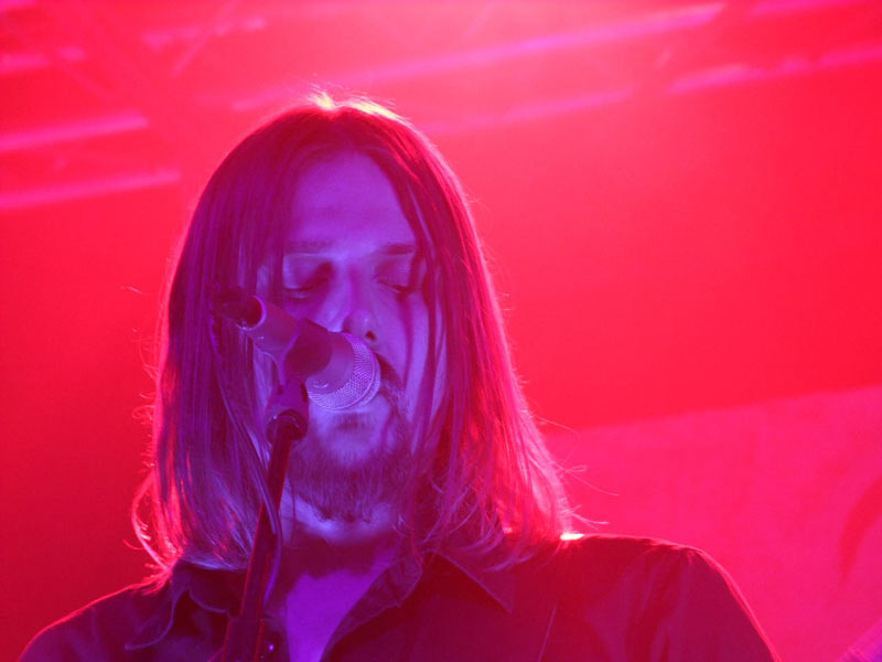 Wie man es von RIVERSIDE kennt, wird auf der Stage nicht viel geredet. Mit „Volte-face“ zeigen Riverside ihr druckvolles Gesicht. Gitarrenriffs wie Blitze, ein Drumgewitter, das den Boden vibrieren lässt, düstere Keyboard- und Bassläufe und dazu der intensive Gesang von Duda. Ein geflüstertes „Voices in my head“ leitet über zum Titelsong des ersten Albums „Out of myself“, das sowohl Dudas Stimmvielfalt, mal herzzerreißend und mal growlartige Schreie, wie auch die innere Zerrissenheit des Protagonisten der Trilogie widerspiegelt. „I turned you down“ bietet wieder einmal die fast flehentlich wimmernden Gitarrensoli, bevor „Acronym love“ das ganze mit tragenden Keyboards und wunderschönem warmen Gesang garniert. „Back to the river“ erinnert alle PINK FLOYD-Fans an die schönen Stunden, die sie mit „Shine on you crazy diamond“ hatten. „Dance with the shadow“ beginnt wie ein Vulkanausbruch und ist neben dem Titelsong das Highlight von „Second life syndrome“. Eine düstere elfminütige Achterbahnfahrt. Den Abschluss des regulären Programms bildet das psychedelisch-spacige „Rapid eye movement“.