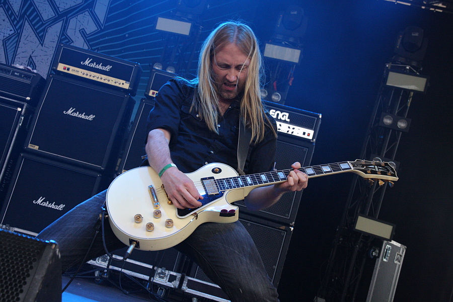 Von U.D.O. erwarte ich zugegebenermaßen nicht allzu viel. Um so größer fällt dann die Freude über den Mördersound aus, mit dem Herr Dirkschneider nebst sanierter Begleitmannschaft loslegt. Insbesondere die beiden neuen Gitarristen Andrey Smirnov und Kasperi Heikkinen agieren extrem tight und noch dazu äußerst agil. Ob dann im weiteren Verlauf des Sets unbedingt beide