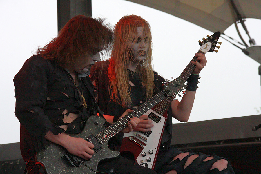 FLESHCRAWL stehen in der Tradition der wenig offensichtlichen Opener des Rock Hard Festivals: Warum die wohl schwedischsten deutschen Death Metaller bis heute kein Bein auf den Szene-Boden außerhalb des Mainstream-Territoriums bekamen, weiß wohl nur der sprichwörtliche Teufel, dem die Schwaben (geht's bei Metal Blade weiter? Cyclone Empire wären auch eine Option) nicht huldigen müssen, um dem Zeitgeist zu entsprechen, vielmehr aber noch zeitlos zu klingen; schließlich laufen ihnen junge Kopisten in puncto Erfolg längst den Rang ab, was der Combo gleich ist, wie Fronttier Sven Groß hinter den Kulissen glaubhaft bekennt. Dass es FLESHCRAWL nur noch um den Spaß an der Sache geht, stellen sie mit einer spielgeilen wie routinierten Performance klar, die ausgehend vom eröffnenden "As Blood Rains From The Sky" keine offenkundigen Fremdanteile enthalten muss, um Kennern wie Neulingen tödliches Metall mit Geschichtsbewusstsein, aber ohne schalen Retro-Beigeschmack (wieder) schmackhaft zu machen. Über fünf Jahre Studio-Sendepause waren genug, Jungs. (AS)
