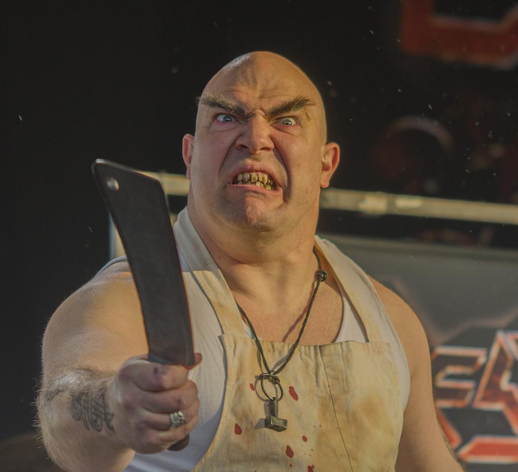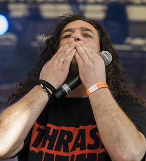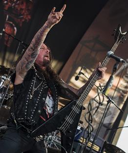 Das gilt im Übrigen auch für die nachfolgenden DESTRUCTION, selbst wenn sie sich nicht lumpen lassen und ihr Programm ins Zeichen der alten Schule stellen. Dies bedeutet wie im Fall ihrer nördlicher situierten Kollegen, dass sie ihren Katalog - zumindest die Schmier-Ära - mehr oder weniger ausgewogen abdecken, aber eben verstärkt auf "old shit" setzen. Der Mad Butcher dominiert das Geschehen auch in Fleisch und Blut verkörpert, wobei die Showeinlagen mit blutigem Gematsche zwar unterhaltsam sind, aber letztlich belangloser bleiben als eine Triple-(oder Double?)-Schlagzeugeinlage und der Gastauftritt von Weggefährte Andy Brings (u.a. ex-Sodom), der zum Ende hin den Rock'n'Roller in stärker einnehmender Weise markiert als Frontmann Schmier. Der zieht halt alle Blicke auf sich und weiß, wie man ein Publikum um den kleinen Finger wickelt, lässt den bedenklich gebrechlich aussehenden Gitarristen Mike - das Hirn des Trios - aber zwangsläufig leider in den Hintergrund treten. Andererseits: So funktioniert Erfolg eben, und ohne den Hünen an der Spitze würde es die Legende (das ficht niemand an) längst nicht mehr geben. (AS)