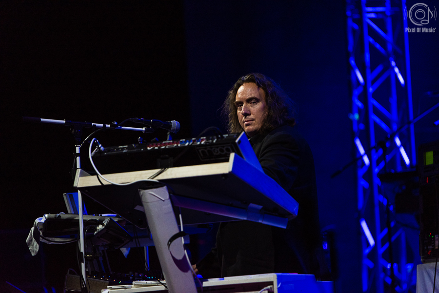 Ok, genug der Spannung. Thorsten Quaeschning, der musikalische Erbe von Edgar Froese und aktuelle Kopf der Elektronikformation Tangerine Dream läutete den Abend um 20:00 Uhr mit den Synthesizerklängen seiner eigenen Kompositionen ein. Zumindest konnte ich als in diesem Genre eher Ungeübter keine Stücke von Tangerine Dream heraushören. Für die Gäste war das sicher eine Herausforderung, da die Musik von Quaeschning und SAGA kaum unterschiedlicher sein könnten. Aber gut, man wächst an seinen Aufgaben. Nach ca. 40 Minuten war dann aber auch schon wieder Schluss und der Umbau begann.