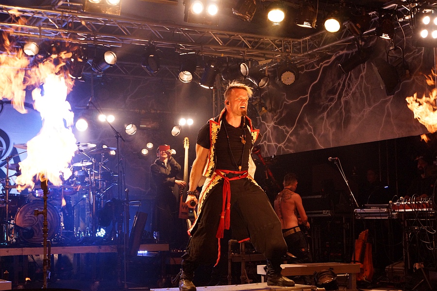Um 22.00 Uhr fällt der Startschuss für den rockigeren Teil der Vorstellung und mit „Der Letzte Spielmann“ vom 2011er Album „Sturm Aufs Paradies“ beginnt eine Zeitreise durch achtzehn Jahre Bandgeschichte, die keinen Hit auslässt.