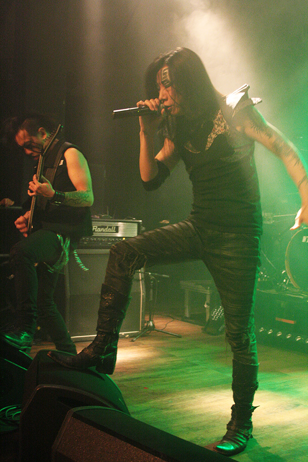 Klubsen im Industrie-Stadtteil Hamburg-Hammerbrook ist eine erstaunlich kleine Location für eine Band wie SATYRICON, deren Auftritt man als Hamburger eher im Docks oder in der Großen Freiheit 36 erwarten würde. So ist der Club auch bereits recht gut gefüllt, als CHTHONIC loslegen. Die fünf Taiwanesen scheinen inzwischen eine mittelgroße Nummer zu sein. Jedenfalls haben sich einige Fans eingefunden, die etwas Bewegung ins anfangs noch sehr starre Publikum bringen.