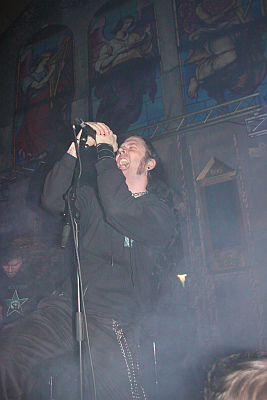 Ganz im Gegensatz zu FÄULNIS. Die zocken eine punkig-rockige Variante von suizidalem Black Metal und haben den wohl auffälligsten Frontmann des Tages in ihren Reihen. Seuche nennt der Knabe sich und besticht zunächst durch seine Optik: kurze Haare, Oberlippenbart und ein weißes Wifebeater-Unterhemd, das seine vernarbten Oberarme besonders gut zur Geltung bringt. Sieht schön asozial aus und auch mit seiner gesamte Gestik und Mimik stellt er den durchgeknallten Irren mehr als überzeugend dar. Offensichtlich haben FÄULNIS auch eine entsprechende Anhängerschar – selten hat man so viele Leute mit geritzten und vernarbten Armen in den ersten Reihen eines Konzerts gesehen. Und die Zerschnittenen bejubeln den Auftritt frenetisch und singen die Songs begeistert mit. Man kann natürlich geteilter Meinung darüber sein, wie sinnvoll es ist, selbstverletzendes Verhalten und die damit einhergehende psychische Störung so demonstrativ zur Schau zu stellen (Stichwort Nachahmer), aber in gewisser Weise macht das auch stark den Reiz dieser Band aus. Seuche schreit, brüllt, gröhlt und leidet sich mit Inbrunst durch die eingängigen, wirklich gut rockenden Songs seiner tight aufspielenden Band und pöbelt Leute an, die NSBM angeblich nur wegen der Musik hören. Im kurzweiligen Set ragen vor allem die Songs „30. Juli, bewölkt“, „Gespien“ und „Landgang“ heraus und so kontrovers es auch sein mag, ist der Auftritt von FÄULNIS komplett stimmig und deshalb bei aller Geschmackssache ein Tageshighlight.
