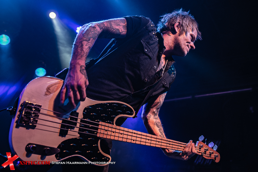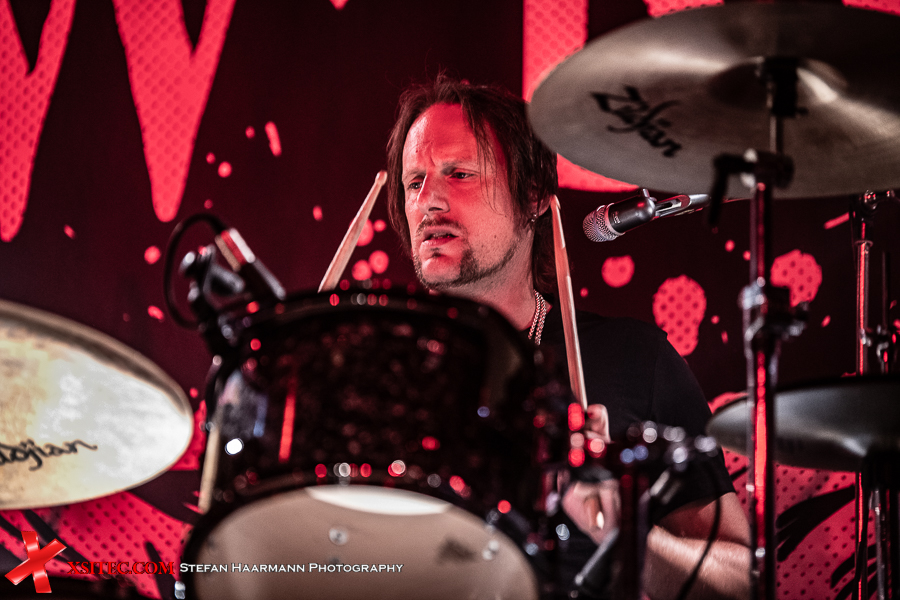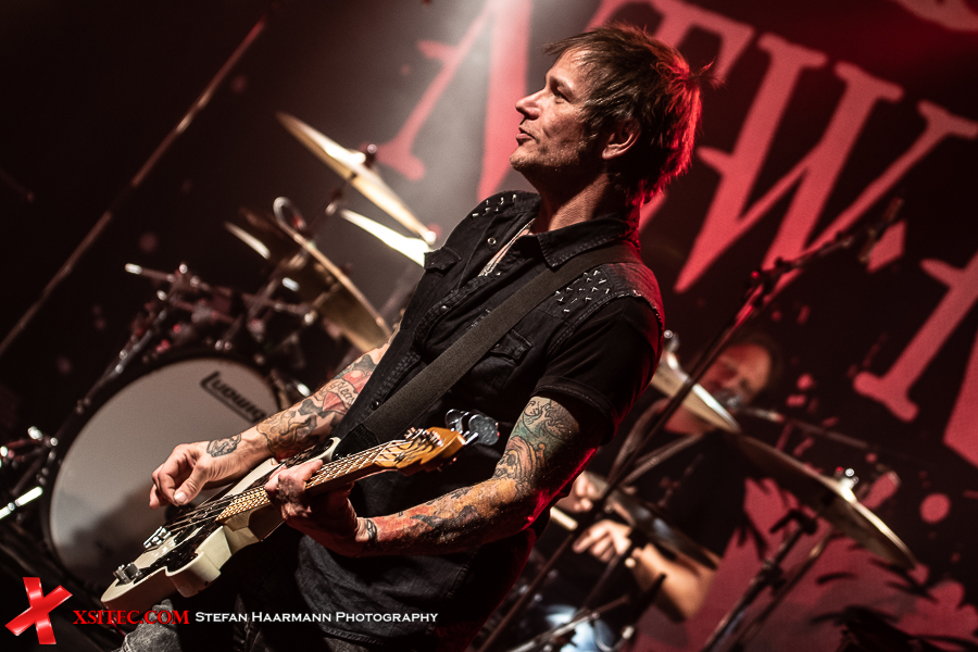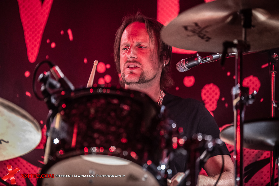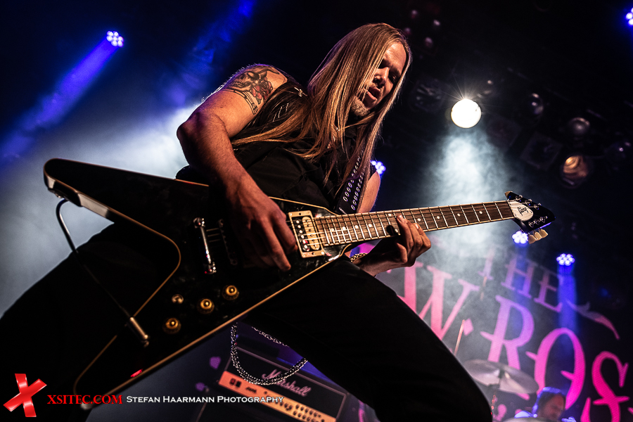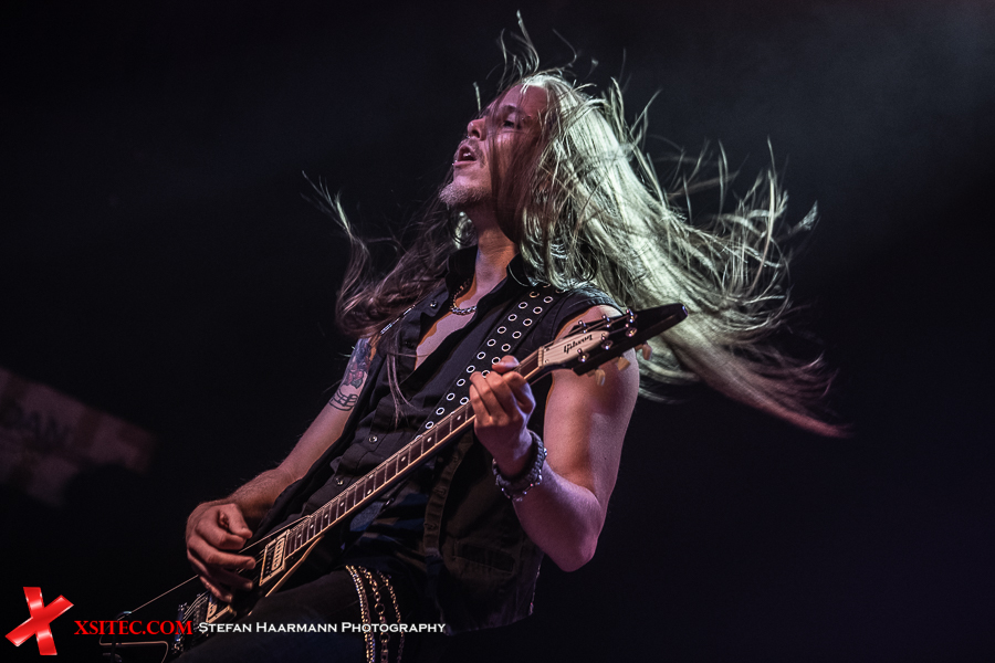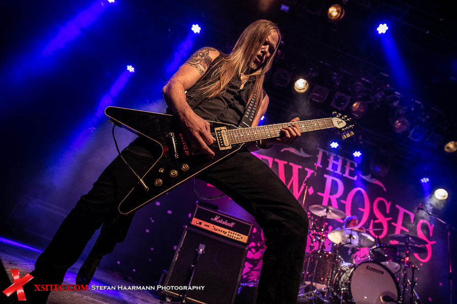 Hardy am Bass muss sich aufgrund des vielstimmigen Chors in Bochum ein ums andere Mal ein Lächeln verkneifen und traktiert seinen Viersaiter umso vehementer. Nach „Life Ain´t Easy“ gibt es mit „Dancing On A Razor Blade“ vom 2017er Album „One More For The Road“ einen weiteren Killer, der neben einer hartrockenden Strophe über einen stadiontauglichen Chorus verfügt. Ganz nebenbei glänzt Poser-König Norman Bites immer wieder mit grandiosen Soli, die er seiner Gibson Flying V entlockt.