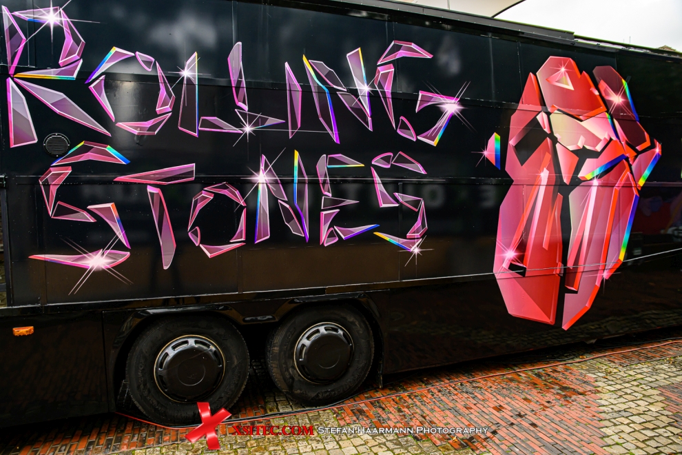 Das Innere des Busses ist mit Fotos der Herren Jagger, Richards und Wood dekoriert, daneben gibt es eine Vitrine mit den beiden handsignierten LPs, die es im Rahmen der Bustour zu gewinnen gibt. Der Sound aus den Boxen ist grandios und unterstreicht die hochwertige Produktion des neuen Albums, die auf technischen Firlefanz verzichtet und ganz bewusst sehr dezent und ursprünglich gehalten ist.