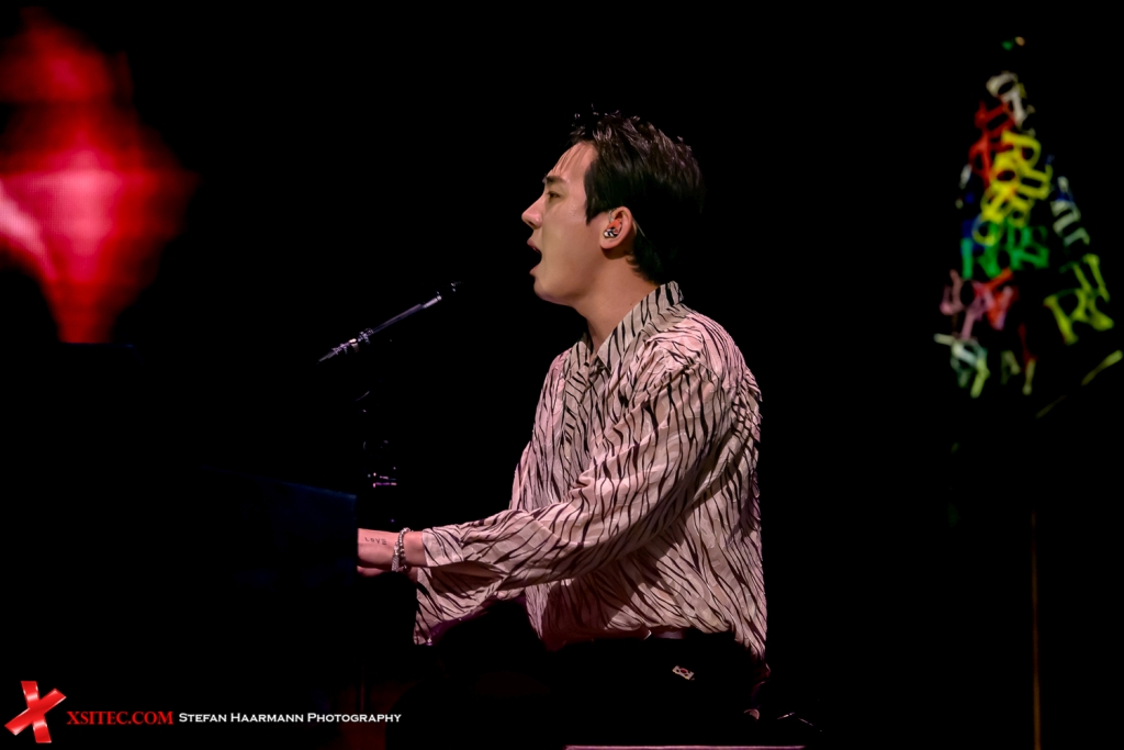 Die bereits angesprochenen Lightsticks, die bei „Red“ das Palladium bereits kollektiv in rotes Licht getaucht hatten, werden nun in allen Farben geschwenkt, ein Effekt, der dieser Show eine Einzigartigkeit verleiht, die man so nicht bei vielen Events zu sehen bekommt. Die Party steigert sich mit „Yes“ und „I.L.Y.“ über „Time“ stetig weiter, bevor mit „Beauty And The Beast“ eines der absoluten Highlights ansteht, das in der Halle entsprechend gefeiert wird.