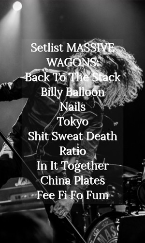 Baz Mills beweist sich in der Zeche Bochum als Frontmann par excellence, der das Publikum ab der ersten Sekunde mit wilden Showeinlagen unterhält und für mächtig Alarm auf der Bühne sorgt. Daneben brilliert Adam Thistlethwaite an der Lead-Gitarre und steuert die prägnanten Soli bei, die den Songs der WAGONS Würze verleihen und zu einem schmackhaften Gesamtpaket werden lassen, das in