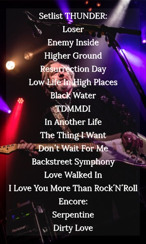 „Love Walked In“ und „I Love You More Than Rock´N´Roll“ beschließen das reguläre Set, aber die Bochumer Fans lassen THUNDER natürlich noch nicht in den Nightliner entschwinden. Nach minutenlangen Ovationen gibt es mit „Serpentine“ und „Dirty Love“ den krönenden Abschluss eines fantastischen Konzerts.