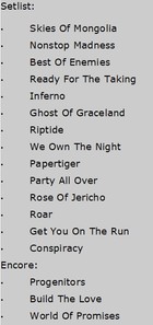 „We Own The Night“ gerät mit ausgedehntem Sing-Along-Part zu einem der absoluten Highlights des Konzerts, in dem das Publikum starke Gesangsqualitäten beweist, sehr zur Freude des Band, die durch Spielfreude und Sympathie zu glänzen versteht und die positive Energie vollumfänglich zurückgibt.