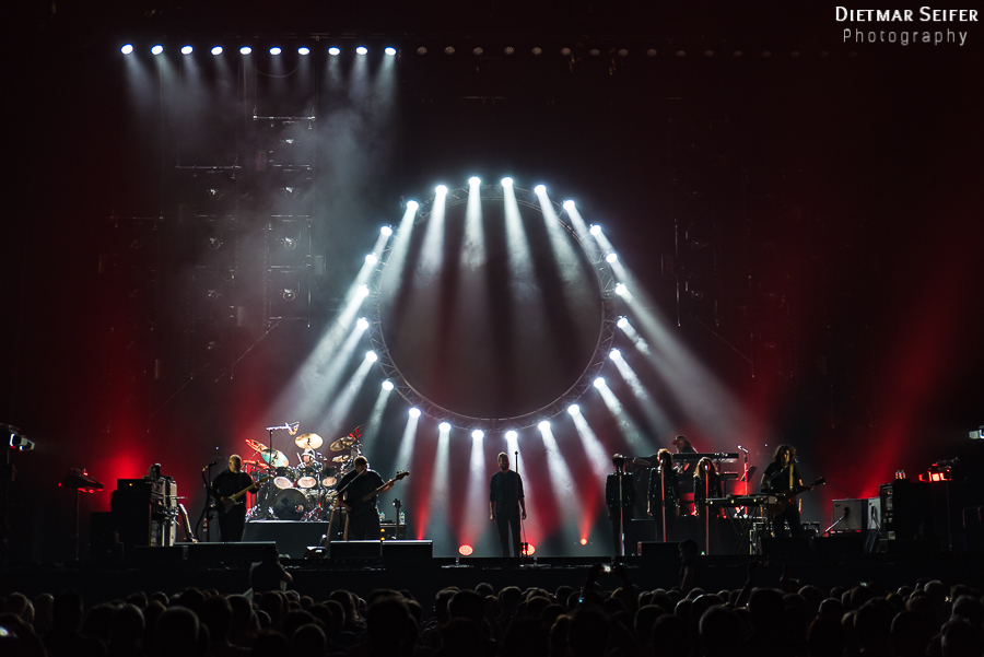 Das Konzert begann relativ pünktlich um kurz nach 20:00 Uhr mit „Obscured By Clouds“ und ein paar Schattenspielen auf einem vor der Bühne hängenden Gazevorhang. Ein Startsetup, was mittlerweile so einige Bands benutzen.