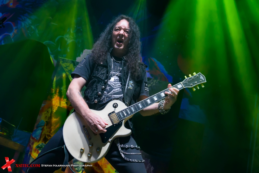 Beim Namen Peter Baltes klingelt es zumindest beim eingefleischten ACCEPT-Fan, denn der Hühne am Viersaiter war neben Udo Dirkschneider Gründungsmitglied der Kult-Metaller, verließ die Band aber 2018 und stieg nach dem Abgang von Tilen Hudrap Anno 2022 bei U.D.O. ein. U.D.O. machen genau dort weiter, wo PRIMAL FEAR aufgehört haben: krachende Riffs, knarzig-rauchige Stimme, dazu geniale Soli der beiden Stromgitarren, die für mächtig Stimmung im Publikum sorgen, das Ganze getragen vom perfekten Zusammenspiel der Rhythmus-Fraktion um Sven Dirkschneider und Peter Baltes. Das kann man nicht viel besser machen, hinzu kommt ein bestens aufgelegter Udo Dirkschneider, der immer noch vielen Jungspunden zeigt, wo der Barthel den Most holt. Der Abend vergeht wie im Flug, Klassiker wie „Holy“ oder „They Want War“ schütteln die Turbinenhalle so richtig durch, bevor es dann im Zugabenteil ein Wiedersehen mit einem alten Mitstreiter gibt, der lange Jahre Teil des U.D.O.-Projekts gewesen ist.