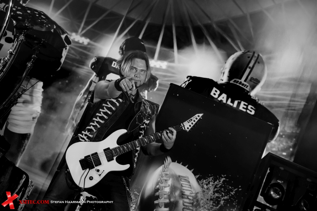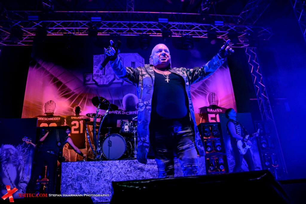 Der Tausch der Backdrops hinter dem mächtigen Drumkit des Dirkschneider-Sprößlings Sven gibt den Blick auf das überdimensionale Album-Cover frei, dessen Hauptakteure in Footballer-Montur Modell gestanden haben. Neben seinem Vater Udo greifen an diesem Abend Fabian Dee Dammer (Gitarre), Andrey Smirnov (Gitarre) und Udo Baltes (Bass) ins Geschehen ein, im Zugabenteil gibt es dann noch einen Überraschungsgast, doch dazu später mehr.