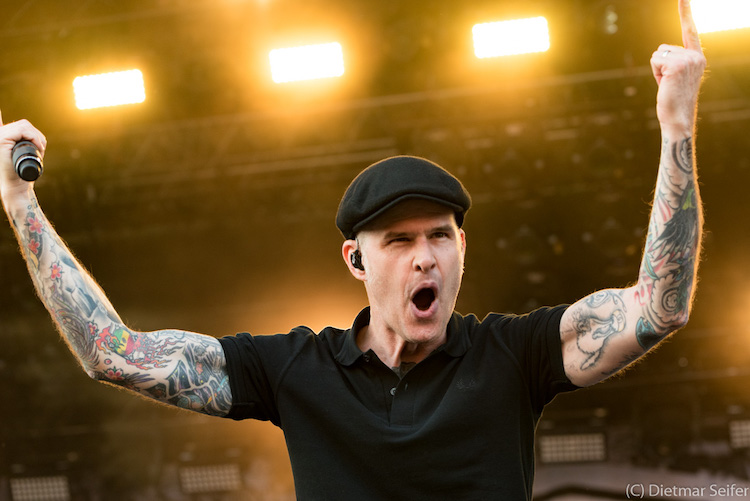 Die beiden Hauptbühnen (Lonsdale und EMP) standen direkt nebeneinander und der Fotograben lief durch. Heißt, man hätte bequem von Lonsdale nach EMP latschen können. Aber bequem kann ja jeder, und deshalb wies mich der Einsatzleiter der Security auf Nachfrage auch darauf hin, dass in diesem Jahr alles anders sei und die Fotografen außen herum laufen müssten, um die Einsatzkräfte nicht zu stören. Also nach meiner Meinung hätte es niemanden gestört, wenn wir durchgelaufen wären, aber so ist das Fotografen-Leben halt. Immer schön außen rum durch ca. 14.000 Fans. Das macht Spaß!
