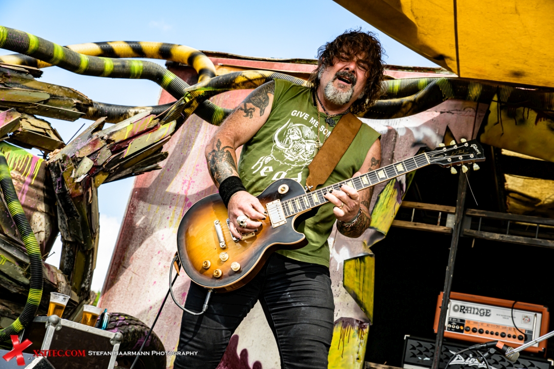 · HIGH DESERT QUEEN (13:00 Uhr) übernehmen im Anschluss und bringen texanischen Wüstenstaub nach Schleswig-Holstein. Ihr Stoner Rock groovt schwer und treibend, mit warmen Gitarrenwänden und einer gehörigen Portion Retro-Feeling. Das Publikum nickt im Takt, einige schließen die Augen und lassen sich treiben – es wirkt fast, als wäre die Wasteland Stage für zwei Stunden nach Kalifornien teleportiert worden.