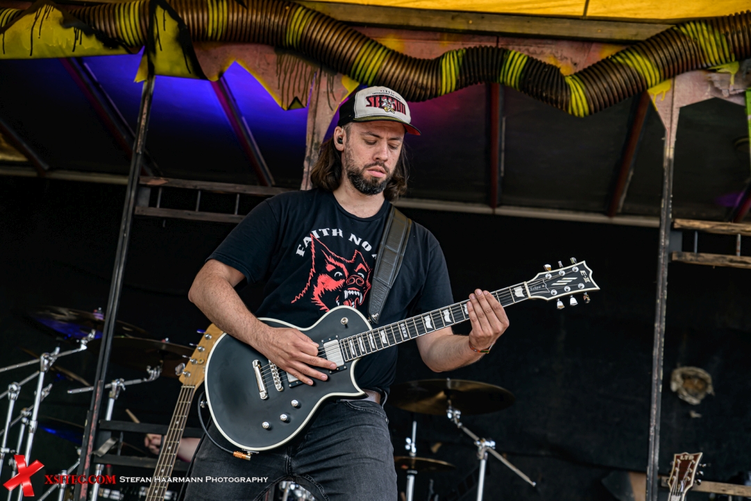 · GODZILLA IN THE KITCHEN (11:30 Uhr), eine deutsche Instrumental-Band, die atmosphärischen Stoner und Progressive Rock mischt. Ihre Songs sind wie musikalische Reisen – getragen, wuchtig, fast meditativ. Viele nutzen den Sound, um langsam in den Festivalmodus zu gleiten, während im Hintergrund die Sonne durch die Wolken bricht.