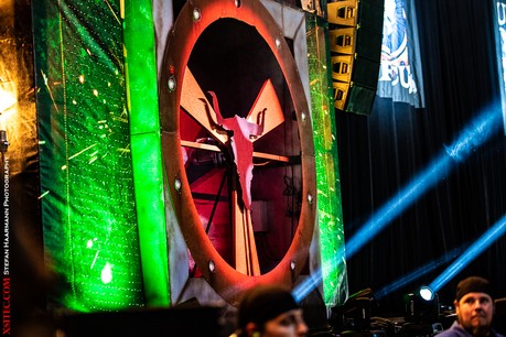 Gestärkt und bereit für die nächsten Aufgaben, geht es zu MESHUGGAH. Die Experimental-Metaller sind auf der LOUDER-Stage zu Gast, die neben den MEGA-Bühnen FASTER und HARDER etwas weiter rechts steht, etwas kleiner, aber immer noch Teil des Infields ist und entsprechend bevölkert wird. Die Jungs um Shouter Jens Kidman, deren Musik sich nicht immer gleich beim ersten Hören erschließt, haben ihre Fangemeinde vor der Bühne versammelt. Auch die Anzahl der Fotografen im Graben ist beträchtlich. Die Lichteffekte sind beeindruckend und außergewöhnlich, was für einige nette Fotos sorgt.