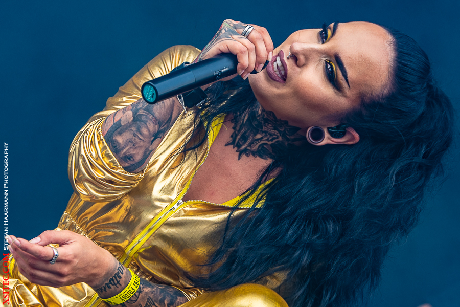 Bereits um 11.00 Uhr betreten JINJER die LOUDER-Stage, um ihren Teil des Frühsports beizusteuern. Tetiana Shmailiuk ist in ihrer Eigenschaft als Vorturnerin voll in ihrem Element. Während die Bandkollegen ihr Pensum routiniert abspulen, zeigt die Dame eindrucksvoll, was es im Jahr 2019 heißt, Teil des Metal-Business zu sein. Perfekt gestylt, gut eingesungen und voller Energie growlt sie sich durch das Set. Keine Spur von Müdigkeit ist zu spüren. Die Fans sind daher auch schlagartig wachgerüttelt und feiern die Band. Ein ganz starker Auftritt.