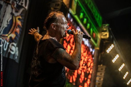 Nach einem kurzen Abstecher bei THE DAMNED, geht es zu Angry Anderson und seiner Kombo ROSE TATTOO, die sich in ihrem gefühlten siebten Frühling befindet und die Menge vor der HEADBANGERS-STAGE zum Kochen bringen. Angry, der nun auch schon 72 Lenze zählt, ist immer noch enorm gut bei Stimme und sorgt mit seinen kongenialen Mitstreitern Dai Pritchard, Mark Evans, Bob Spencer und Jackie James Barnes für ein weiteres Highlight dieses Auftakttages.