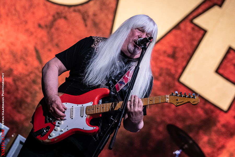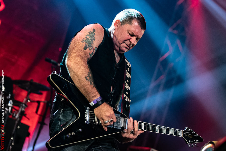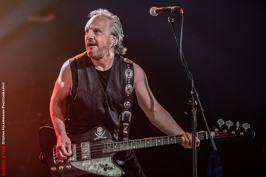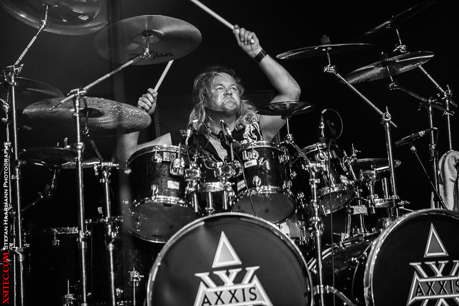 Danach gibt es klassischen, unverwüstlichen Hardrock der Marke AXXIS. Neben Shouter und Mastermind Bernhard Weiss brillieren Dirk Brand am Schlagzeug, Matthias Degener an der Lead-Gitarre, Harry Oellers an den Keyboards und Rob Schomaker am Bass. Insbesondere letzterer ist immer für ein Posing gut und bietet immer wieder ein lohnendes Motiv.