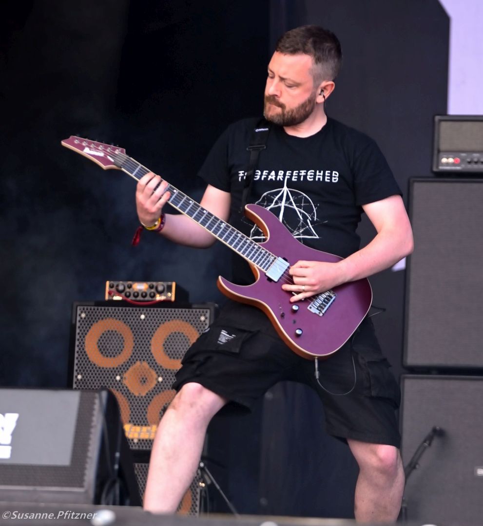 Ohne große Wege zu verlieren, geht’s direkt zur Nachbarbühne, der WET Stage, wo AESECT übernehmen. Die irische Band (bekannt für ihren druckvollen, modernen Thrash/Death-Metal-Mix) sorgt für einen harten Kontrast zum Opener – und das Feld füllt sich deutlich. Die ersten Moshpits des Tages formieren sich, während vor der Bühne Bierbecher durch die Luft fliegen und Gummistiegel im Matsch stecken bleiben.