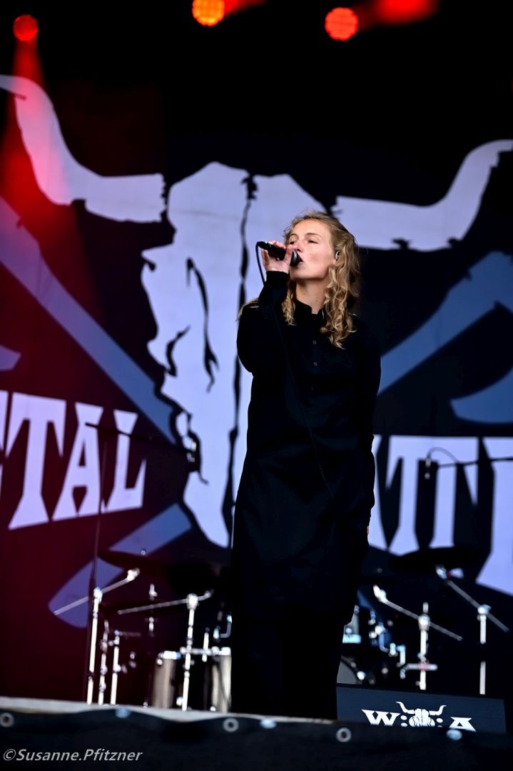 Genrewechsel: Auf der Wackinger Stage spielt RAUHBEIN – Folk Rock mit deutschen Texten und einer ordentlichen Portion Mittelalter-Feeling. Hier ist das Publikum anders: Wikingerhelme aus Plastik oder Metall, Kuhhörner als Trinkgefäße, aufblasbare Keulen. Der Duft von frisch gebackenem Fladenbrot und gegrillten Fleischspießen zieht durch die Luft. Der Wackinger-Bereich selbst wirkt wie ein mittelalterlicher Markt – Buden mit Met, Baumstriezeln und Lederwaren sorgen für authentisches Ambiente.