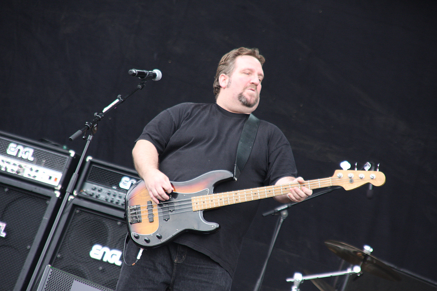 Kurz nach High Noon liegt bereits der typisch unangenehme Geruch vom weichen, plattgetrampelten Festivalboden in Verbindung mit warmer Sonne in der Luft. Dabei sollten die richtigen Belege von oben erst noch kommen... Aber noch ist es nicht so weit und der Weg zur True Metal Stage, wo SACRED REICH wie schon bei ihrem letzten Besuch viel zu früh auf die Bühne müssen, ist noch problemlos zu bewältigen. Es ist dann auch sehr gut gefüllt, als der Vierer aus Phoenix zum "Imperial March" aus Star Wars aufläuft und anschließend mit dem überwiegend instrumentalen "Death Squad" gleich mal voll ins Mett haut.