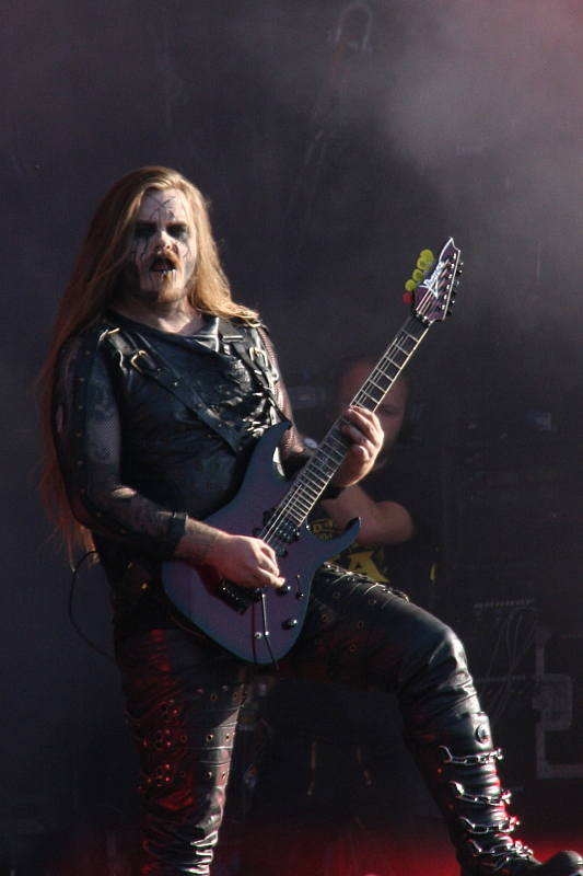 WatainZwar haben MINISTRY bei ihrem Auftritt 2006 mächtig abgeräumt, doch angesichts des als missglückt zu bezeichnenden Comebacks der ehemaligen Industrial-Legende zieht es uns zum Abschluss vor die Party Stage. Dort zelebrieren nämlich WATAIN eines ihrer spektakulären Liverituale. Die musikalisch derzeit herausragendste Black-Metal-Combo entfacht zur Nacht das Feuer der Hölle auf der Bühne, die wie üblich mit allerlei Reliquien ausgestattet ist. Das wollen allerdings weniger Leute als erwartet sehen, denn man kann recht problemlos bis in die vorderen Reihen gehen. Etwas überraschend stellt man dann auch fest, dass die Band offenbar nicht mit Schweineblut besudelt ist und auch die Tatsache, dass Frontmann Erik recht häufig mit dem Publikum kommuniziert, deutet darauf hin, dass man die Sache hier dann doch eher als Show sieht, denn als spirituelles Erleben. Sei’s drum, eine bessere und intensivere Kombination aus dem was man sieht und dem was man hört, bekommt man derzeit eh nicht geboten und so ist auch dieser Auftritt natürlich wieder ein Höhepunkt. Songtechnisch gibt es einerseits die Standards wie "Malfeitor" als Opener, "Sworn To The Dark", "Devil’s Blood" und das alles, aber wirklich alles zerstörende "Reaping Death", andererseits aber auch ein paar Besonderheiten, wie das punkige "Total Funeral", "The Serpent’s Chalice", "Stellarvore" oder das erstmals hierzulande dargebotene "Hymn To Qayin". Zum Ende gibt es dann noch mit "The Somberlain" die Verbeugung vor Jon Nödtveidt und DISSECTION.