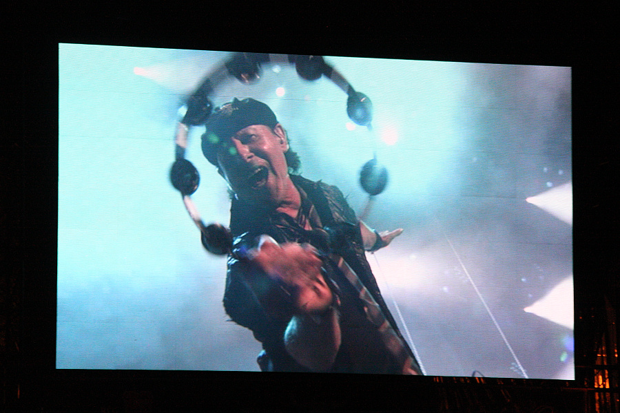 Machine HeadVon zwei Highlights um genau zu sein. Das erste sind MACHINE HEAD. Nein, das erste der noch folgenden Highlights sind MACHINE FUCKIN' HEAD. Denn die blasen mit ihrem Auftritt nochmal alles weg. Müdigkeit, Kälte, wetterbedingte Ungemütlichkeit? Alles weg, alles scheißegal. Denn jetzt heißt es nur noch Energie, Aggression und Lautstärke. Ohrenbetäubende Lautstärke, die unbedingt nach Gehörschutz verlangt und selbst mit dem ist es noch lange nicht leise. Der Sound ist übrigens trotzdem noch gut und detailliert genug, um die nicht gerade anspruchslosen neueren Songs gut rüberzubringen. So wie das eröffnende "I Am Hell (Sonata in C#)", das so schön ruhig beginnt und bei dem dann die Hölle losbricht. MACHINE HEAD sind an diesem Abend pure Energie, die sich genauso in der aggressiven Körpersprache der gesamten Band – im Sinne von "good friendly violent fun"– äußert, wie auch in der Musik selber. Weiter geht es mit dem Debütklassiker "Old" und dem überragenden "Imperium", bevor man den langjährigen Fans ein Geschenk macht und zum ersten Mal "A Thousand Lies" live in Deutschland spielt. "Locust" und das brachiale "Aesthetics Of Hate" folgen, bevor es zum großen Gänsehautmoment, nämlich der sehr emotionalen Ansprache von Frontmann Rob Flynn (der immer noch wie ein Endzwanziger aussieht) vor "Darkness Within" kommt. Dabei wird deutlich, dass MACHINE HEAD keine abgehoben Stars sind, sondern trotz ihres Erfolgs (man headlined ja nicht zum ersten Mal in Wacken) immer noch auf dem Boden der Tatsachen geblieben und absolut authentisch und integer sind. Auch verzichtet man auf allzu viel Bühnenshow, eher düsteres Licht und ein paar Pyros müssen reichen, denn hier zählt nur die Musik. Mit "This Is The End" gibt es dann nochmal einen neuen Song, bevor das grandiose "Halo" und DER Klassiker schlechthin, nämlich "Davidian", den Schlusspunkt unter einen wirklich fantastischen Auftritt setzen.