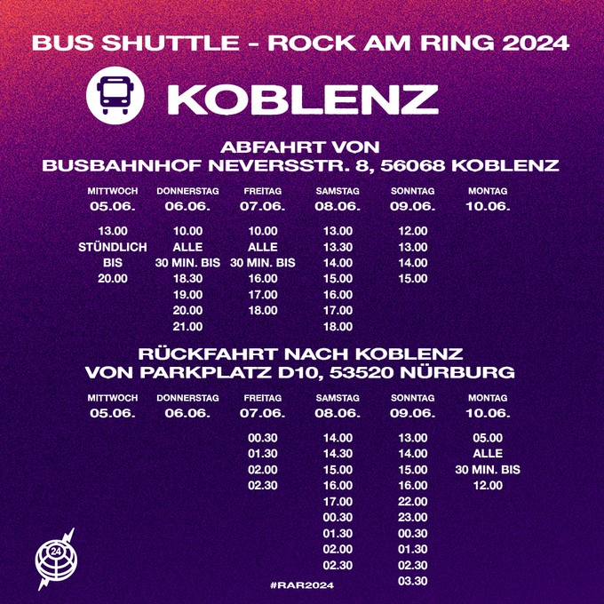 Nachdem zuletzt Kerry King, der Gitarrist der 2019 aufgelösten Kult-Thrash-Metaller SLAYER, bestätigt worden ist, gibt es weitere Ankündigungen der Veranstalteter, die einen Shuttle-Service zum Ring eingerichtet haben, der es Festivalbesucherinnen und -Besuchern ermöglichen wird, bequem und stressfrei morgens zum Ring und Abends zurück nach Hause zu fahren, ohne sich Sorgen um Parkplätze und Führerschein nach evtl. dem ein oder anderen Bier zu viel, machen zu müssen. Nachdem die günstigere Preisstufe am Montag aufgelaufen ist, kosten die Tickets ab sofort 249,00 EUR und sind hier erhältlich.