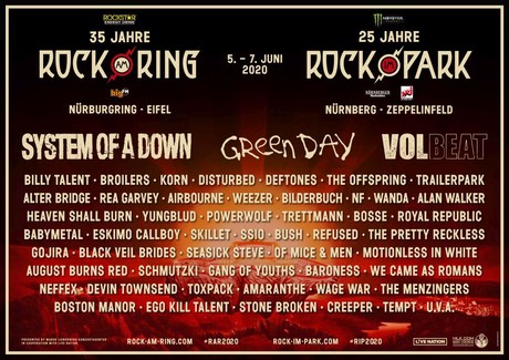 SYSTEM OF A DOWN, GREEN DAY, VOLBEAT, BILLY TALENT, BROILERS, KORN, DISTURBED, DEFTONES, THE OFFSPRING, TRAILERPARK, BILDERBUCH, WEEZER, WANDA, ALAN WALKER, TRETTMANN, YUNGBLUD, HEAVEN SHALL BURN, POWERWOLF, BOSSE, OF MICE & MEN, MOTIONLESS IN WHITE UND AUGUST BURNS RED